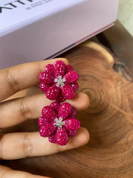 Beautiful flower design ear studs with pearl hangings are perfect for everyone.
