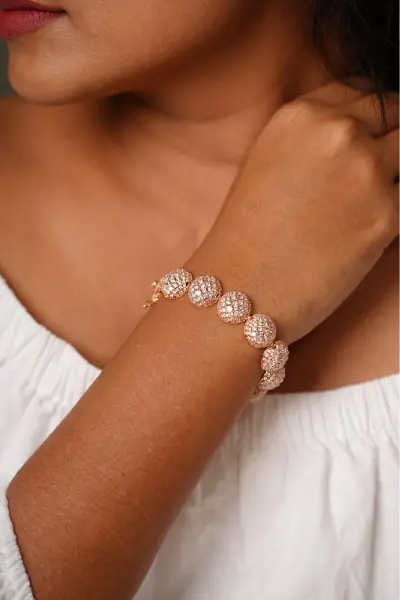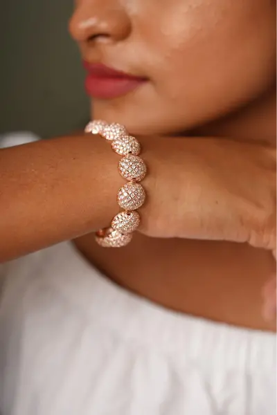 A remarkable diamond bracelet with bringing in a blend of traditional jewellery in todays age. This tennis bracelet is designed like a gokhru but with such a modern touch. Feel free to wear it daily if you want to make a statement, it looks solid, but is so delicate in terms of workmanship. You will be amazed.